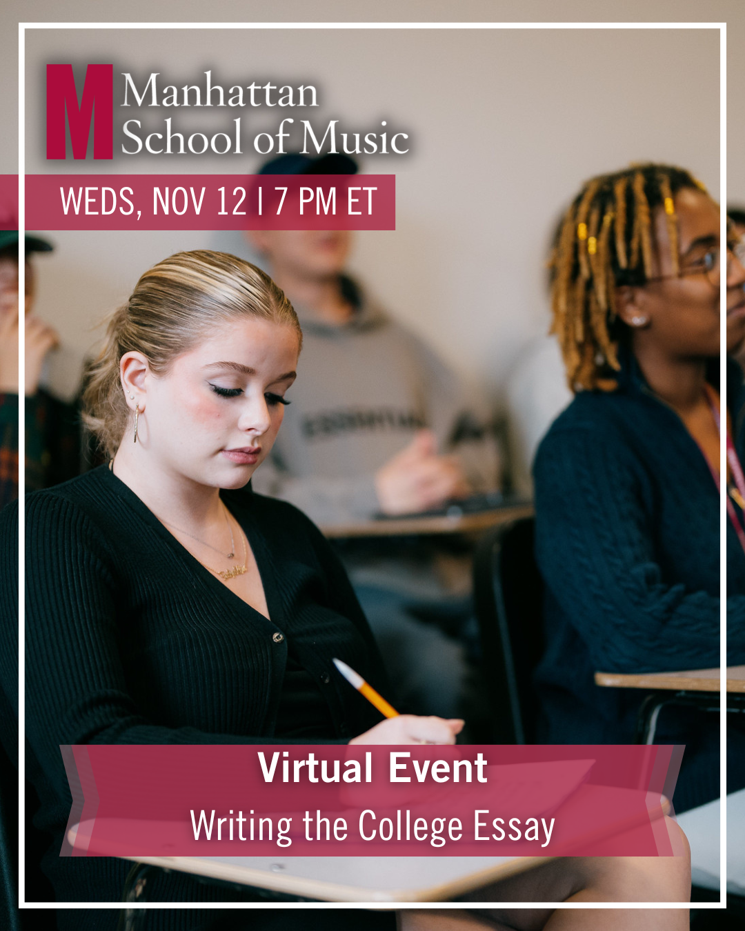 The application essay is your opportunity to give us a deeper sense of who you are as a musician, human, and potential member of the MSM creative community. In this workshop, we'll work together to curate your personal story, so your unique qualities shine through. You'll leave this session with a roadmap for completing your essays more quickly and in a way that showcases your best qualities. We recommend being able to take notes, with paper or digitally, during this session.